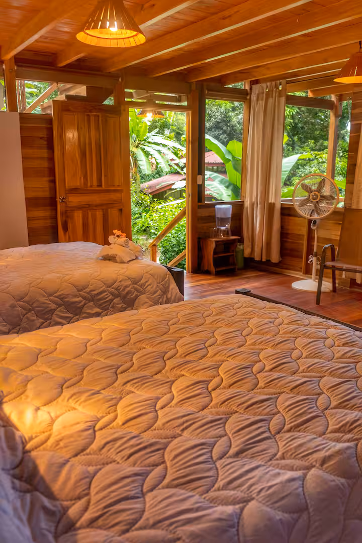 All accommodations have fans and screened ventilation allowing for fresh air and Caribbean breezes. Also there are no TVs in the rooms so the sounds, sights and magic of the Rainforest immersion is pure.